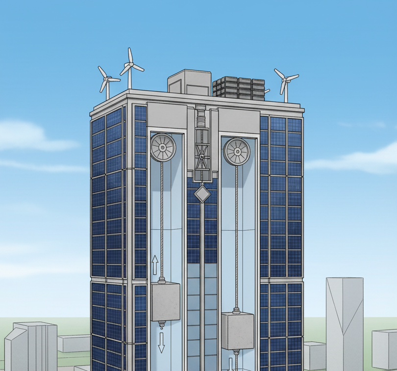 Kanadski istraživači s University of Waterloo predložili su inovativan način pohrane obnovljive energije, korištenjem gravitacije unutar nebodera. Ideja je jednostavna, ali genijalna: višak električne energije iz solarnih fasada i malih vjetroturbina koristi se za podizanje teških blokova u okomitim oknima zgrade, dok se njihovim spuštanjem kasnije stvara električna energija putem generatora.